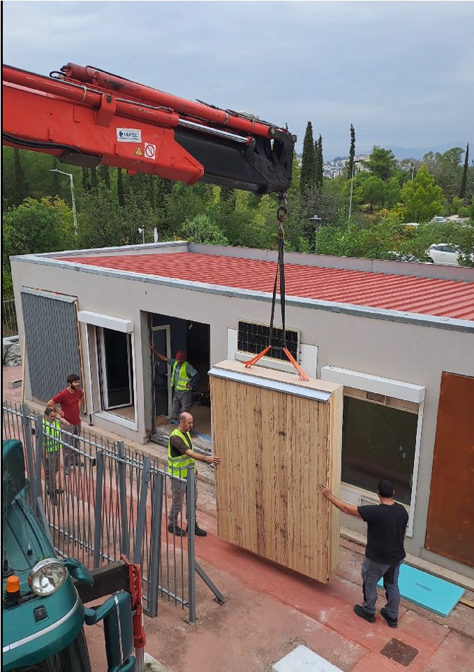Our partners from the National Technical University of Athens (NTUA) have successfully installed four innovative systems at the Athens Sandbox demonstration. These systems represent key Standardised Packages developed within the project and include three variants of the EcoTechWall envelope system, the SmartWall modular façade system, and the NestControl digital monitoring and operational system. Together, they are now being tested in a real-world environment.